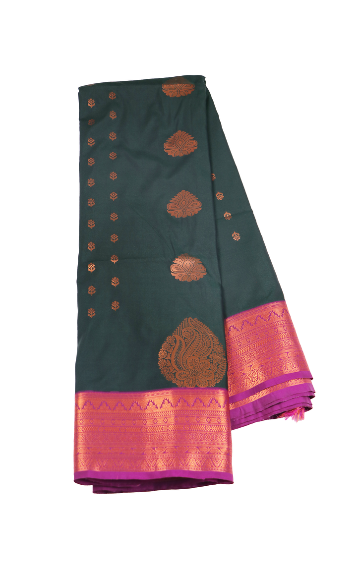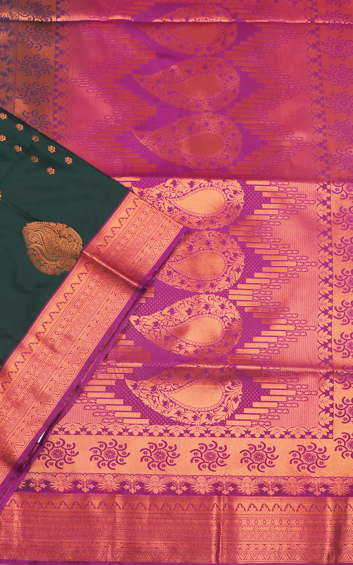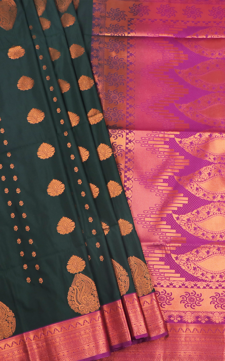 Bottle green with purple-colored fancy Pattu saree