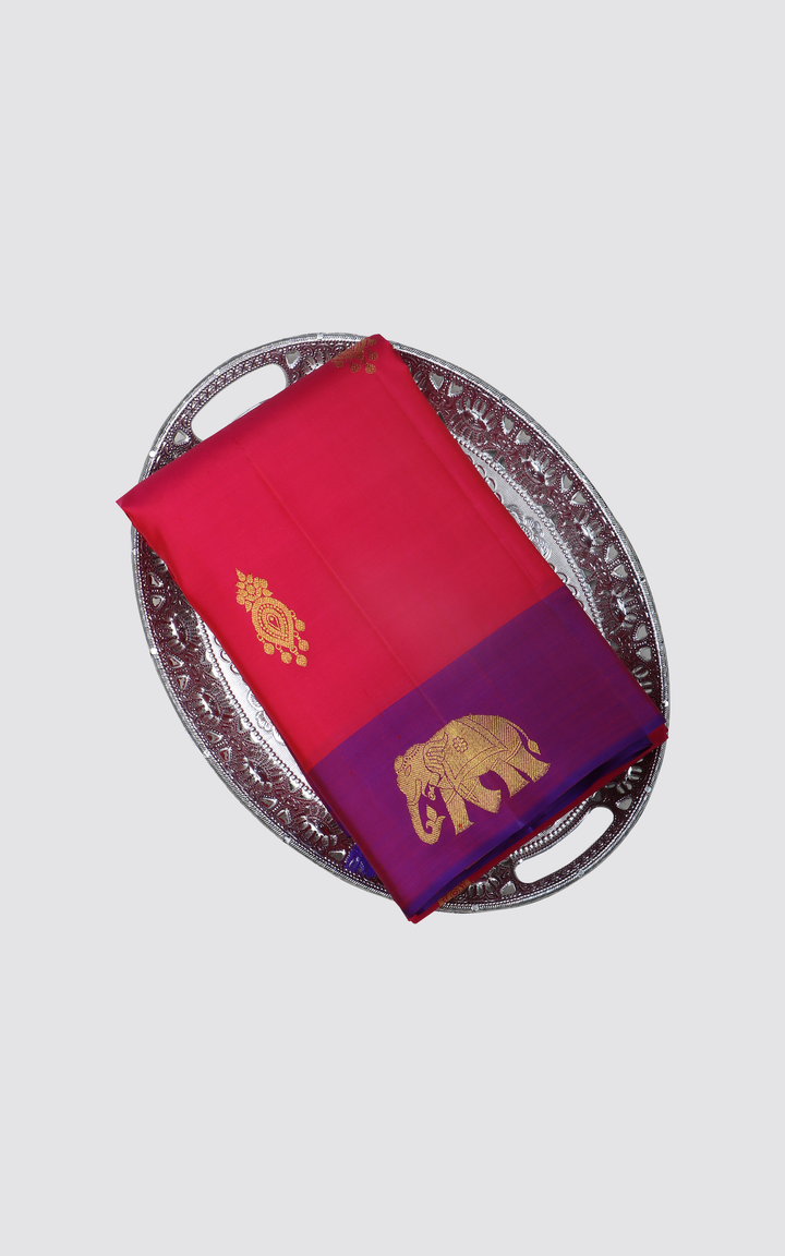 All our sarees are crafted using premium-quality silks, including Kanjivaram, soft silk, and pure zari varieties, handwoven by skilled artisans.
