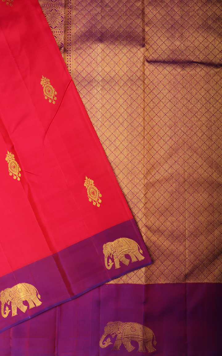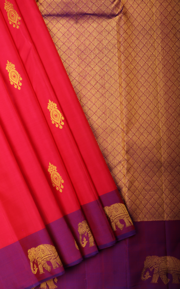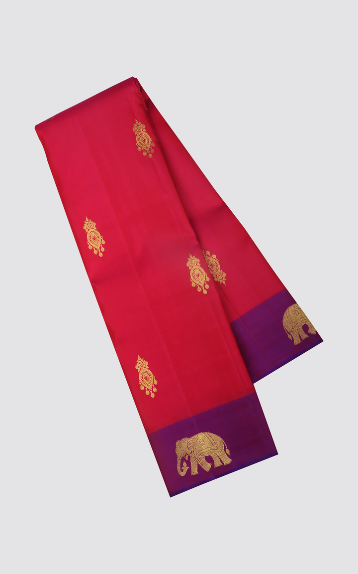Β Brick Red and Wine Pure Silk Saree with Subtle Zari Woven Buttas and Butta Style Border