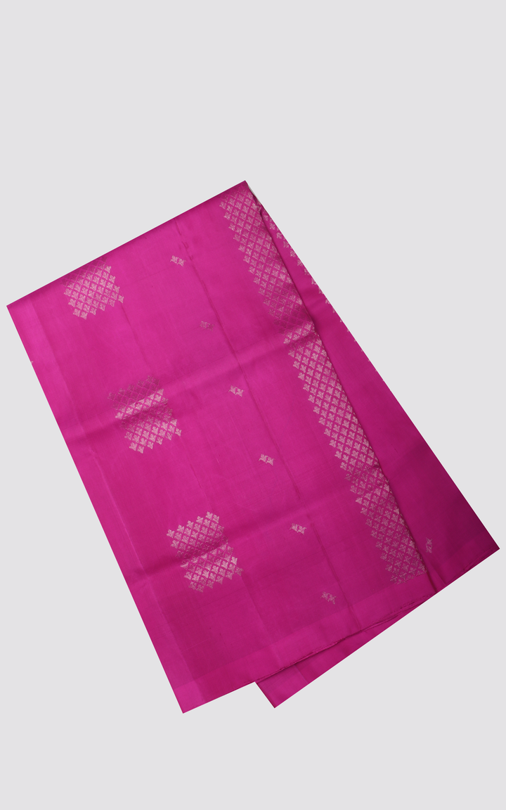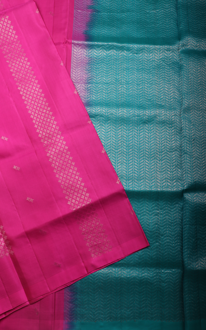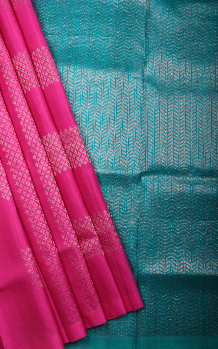 Candy Pink and Teal Blue Pure Soft Silk Saree with Zari Buttas In Borderless Style