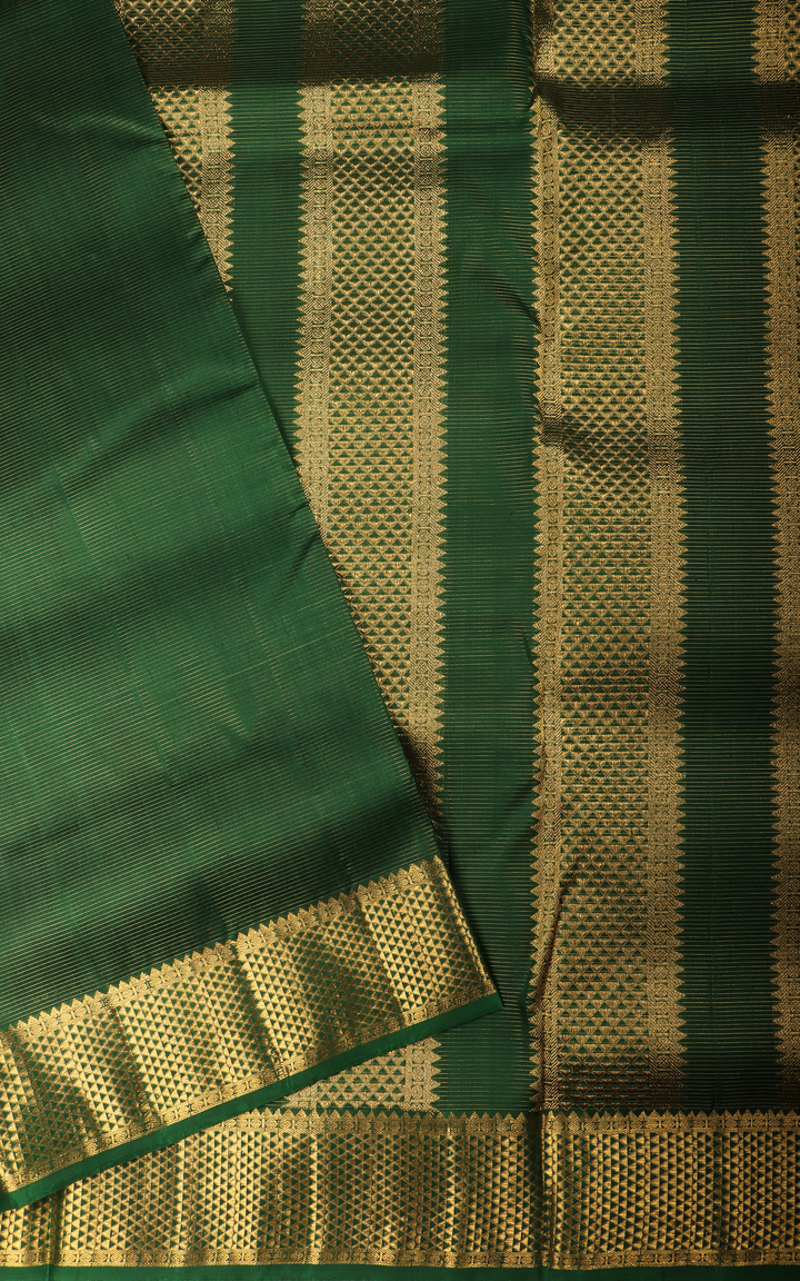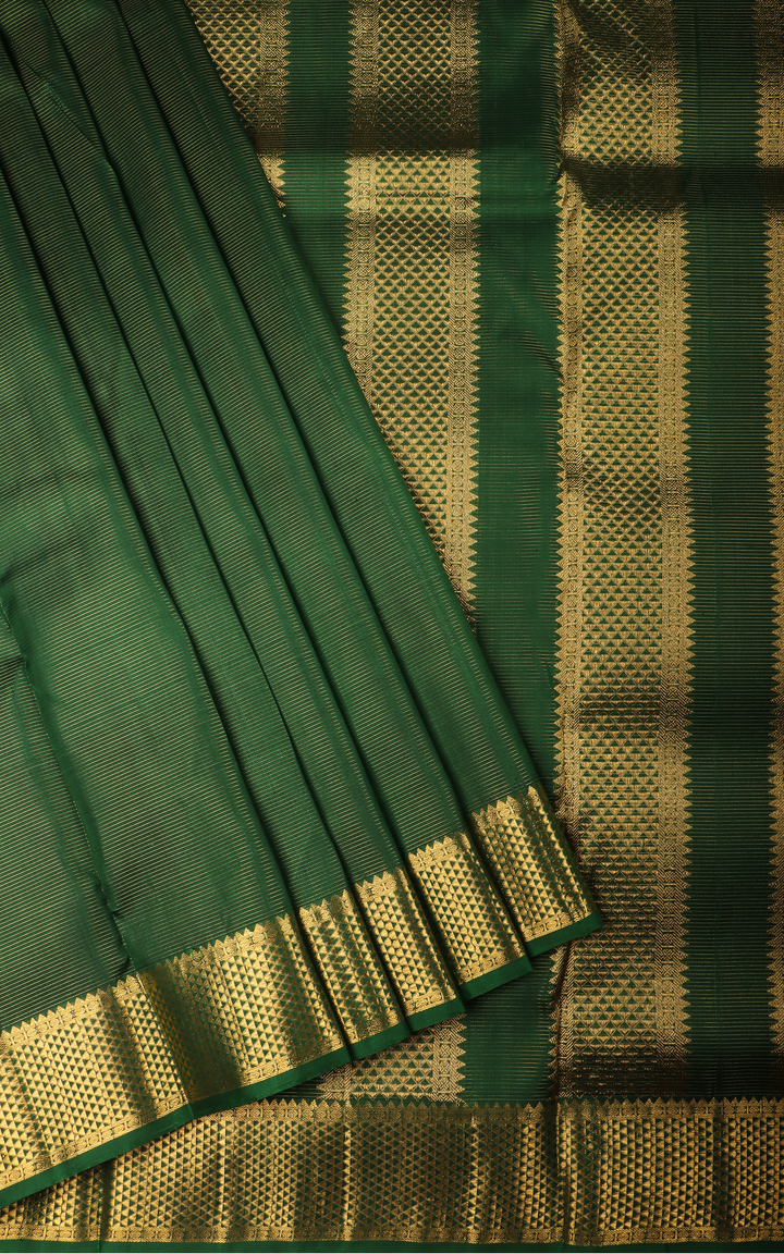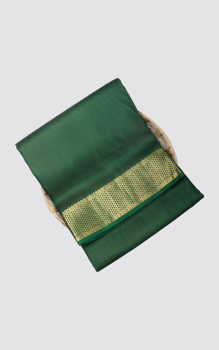 Dark Green 10 Yards Pure Silk Saree with Allover Vairaosi Lines and Zari Woven Border without Blouse