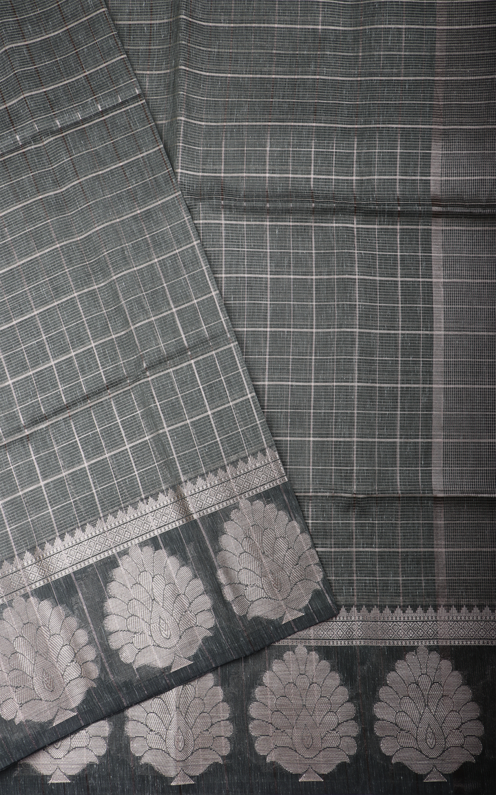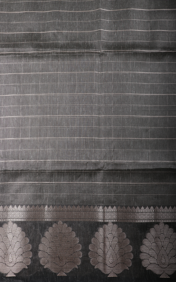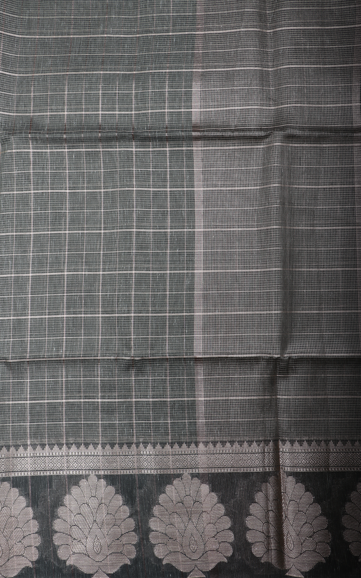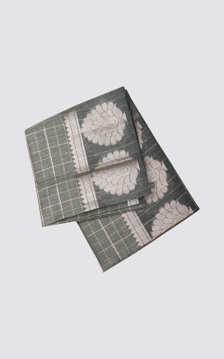 Deep Green Fancy Cotton Saree with Zari Checks and Butta Border