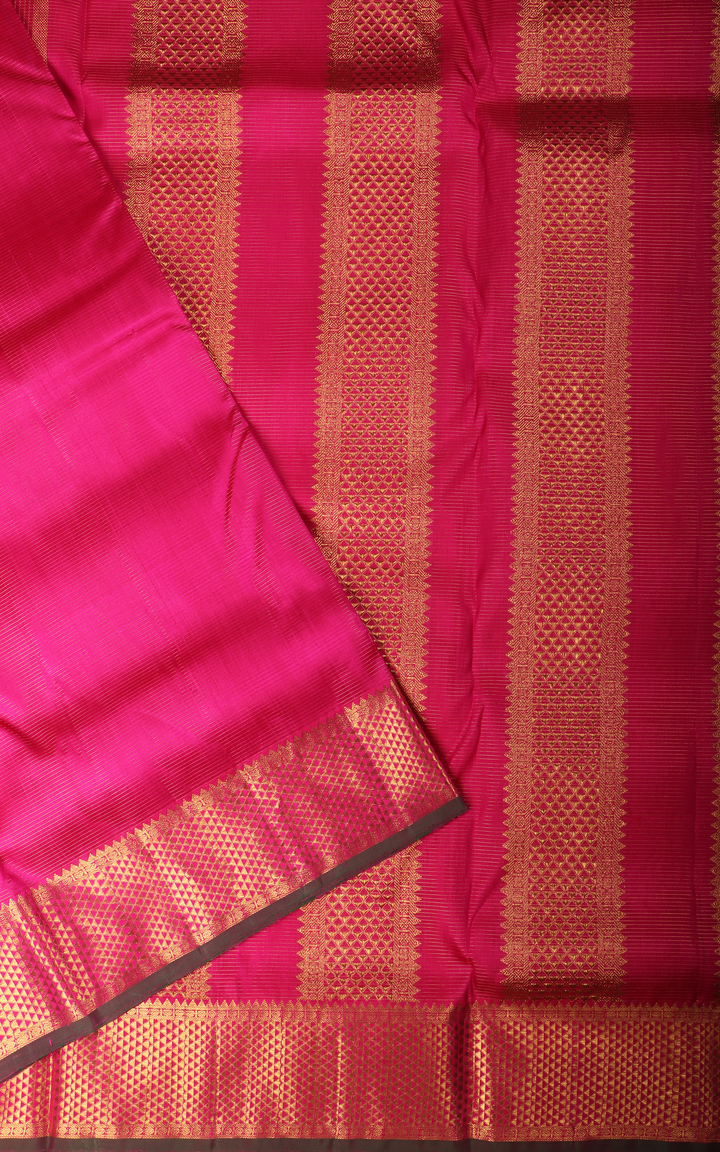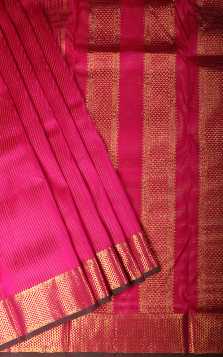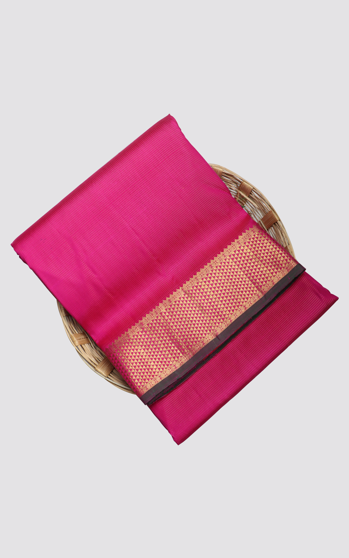 Deep Pink 10 Yards Pure Silk Saree with Vairaosi Lines and Zari Woven Border without Blouse