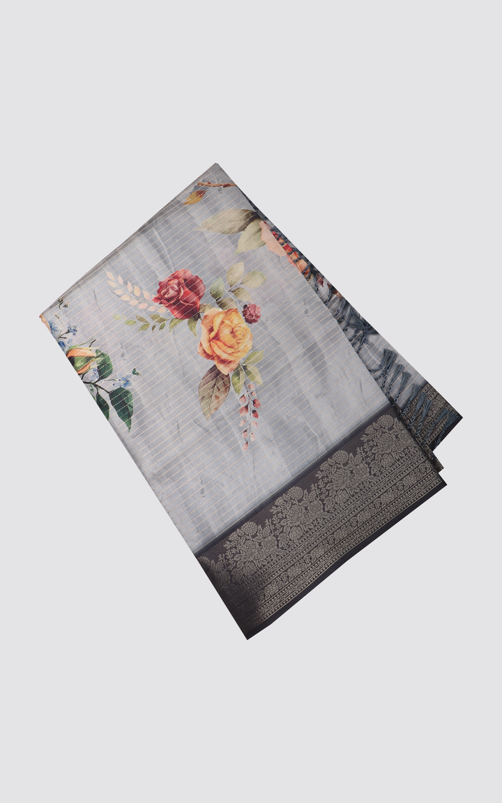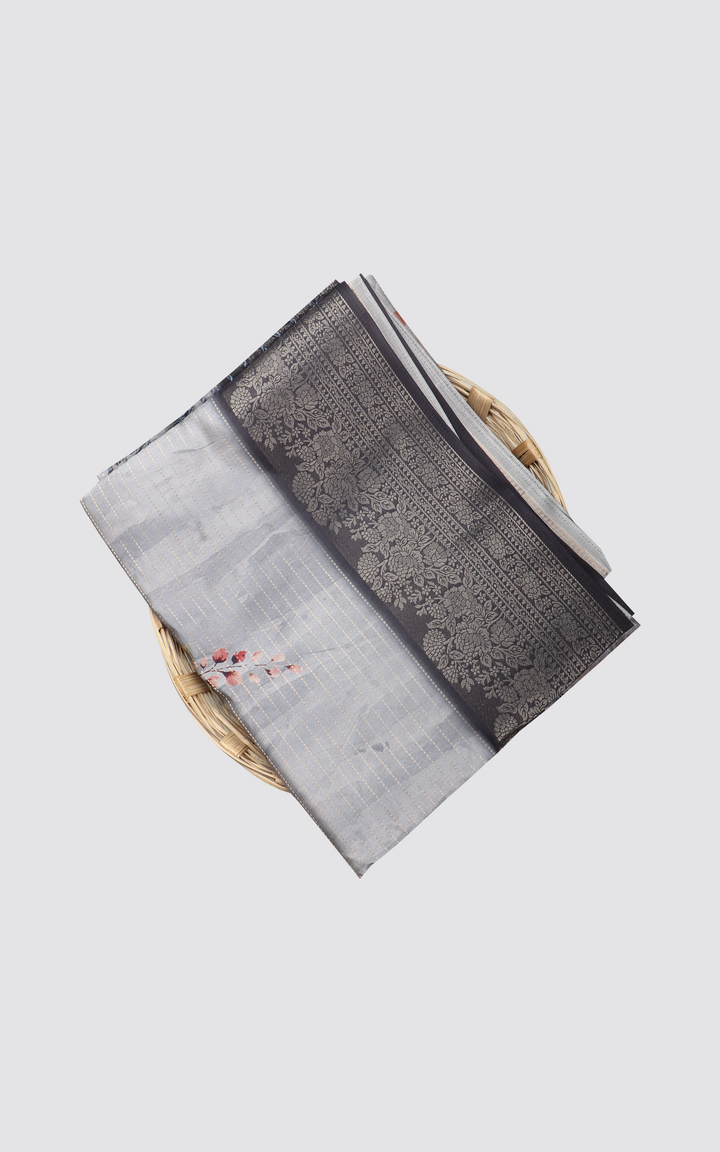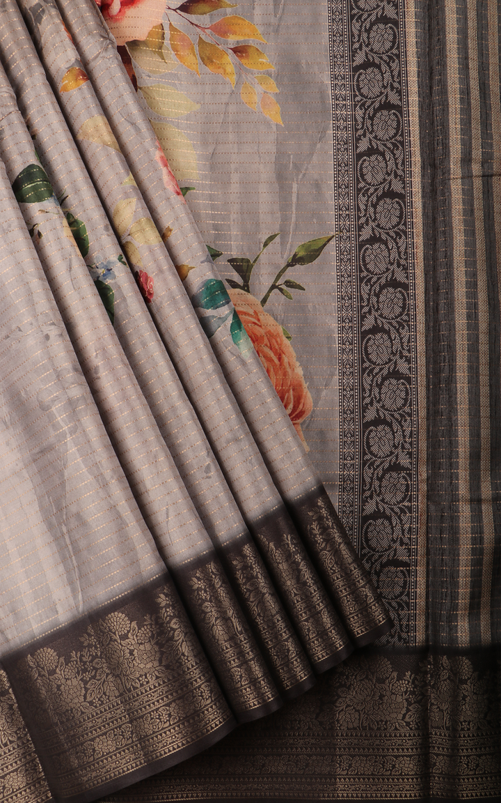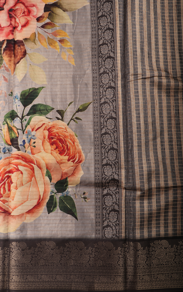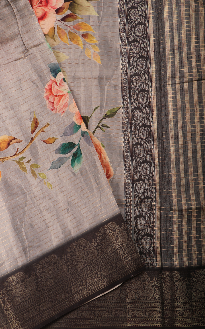 Elephant Grey Semi Tussar Saree with Digital Prints