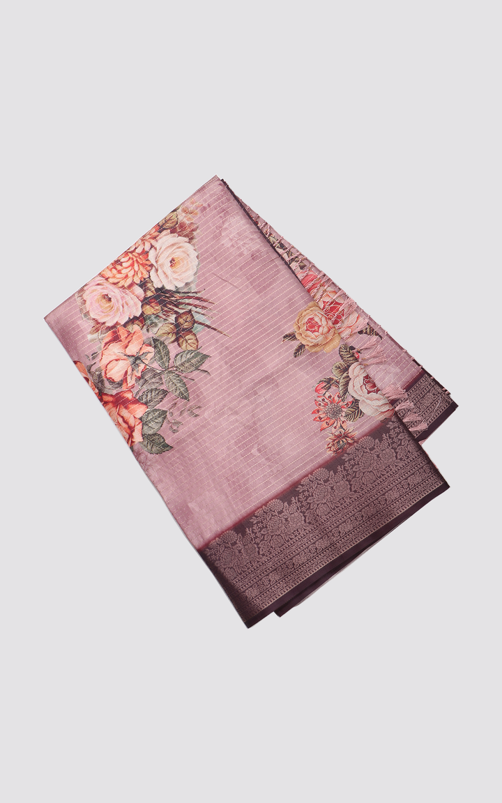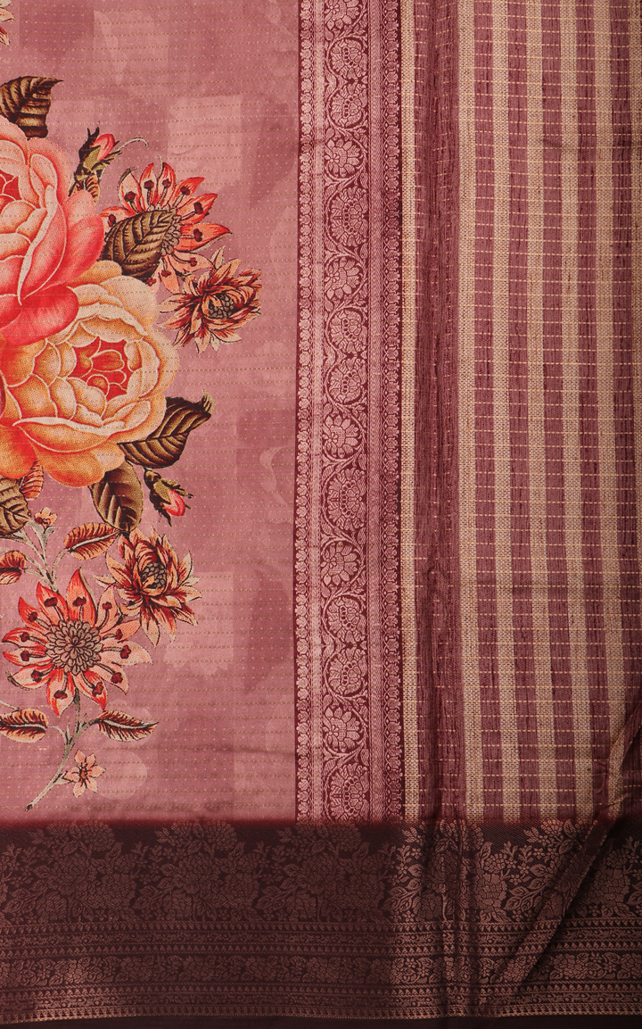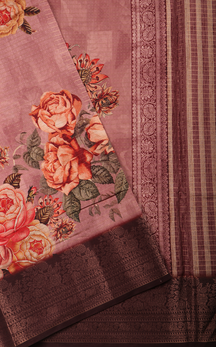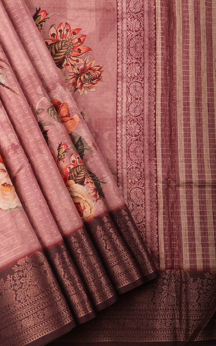 Light Mauve Semi Tussar Saree with Digital Prints