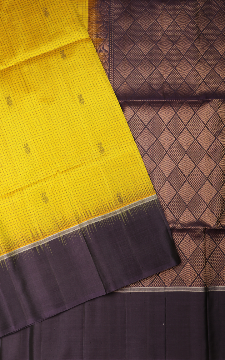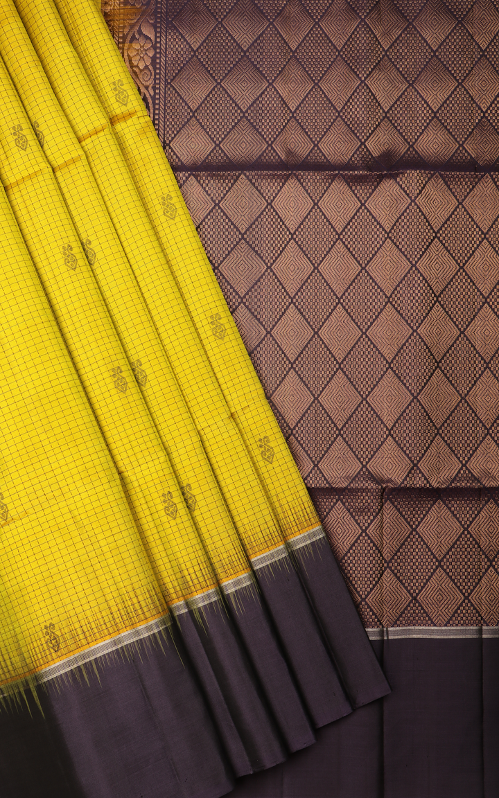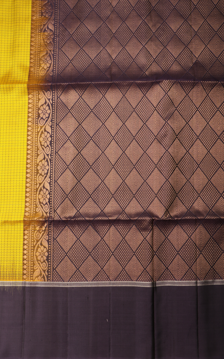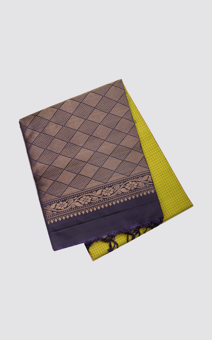 Lime Green and Navy Blue Pure Soft Silk Saree with Allover Line Checked Pattern and Plain Contrast Border