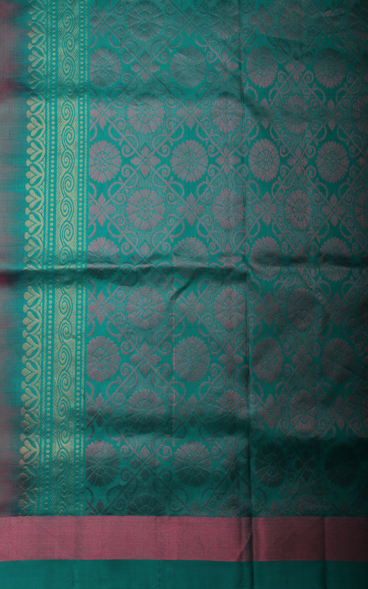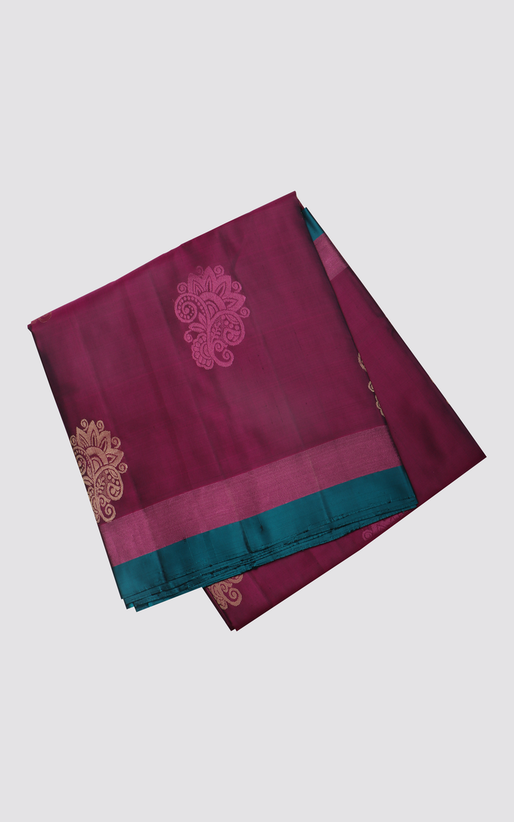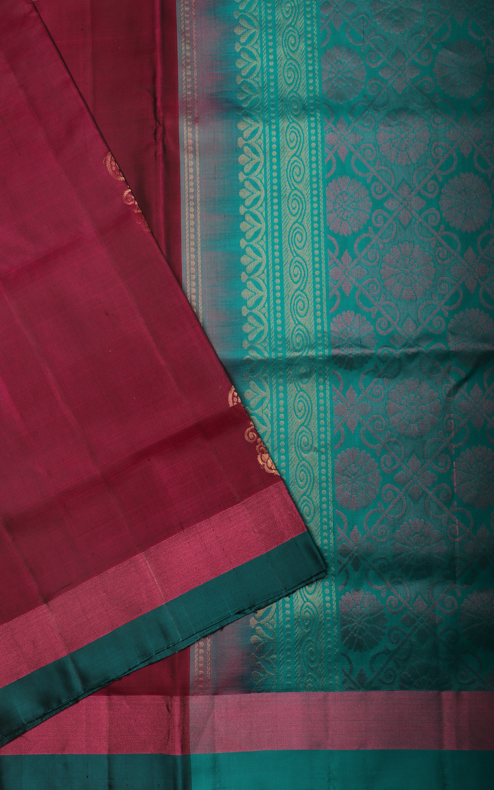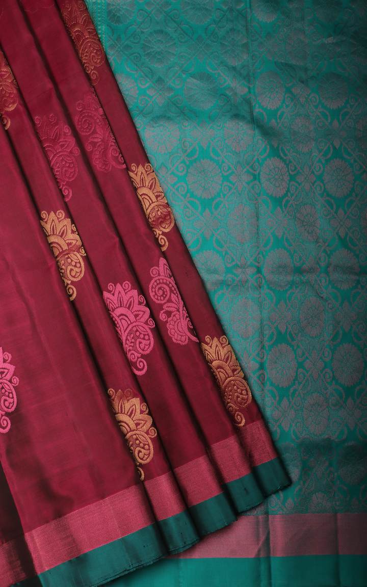 Maroon and Green Pure Soft Silk Saree with Zari Woven Buttas and Zari Woven Border