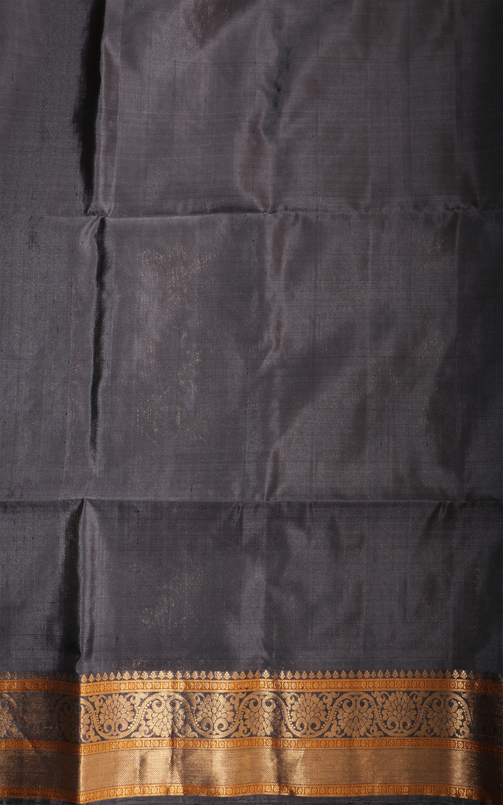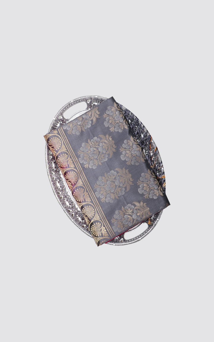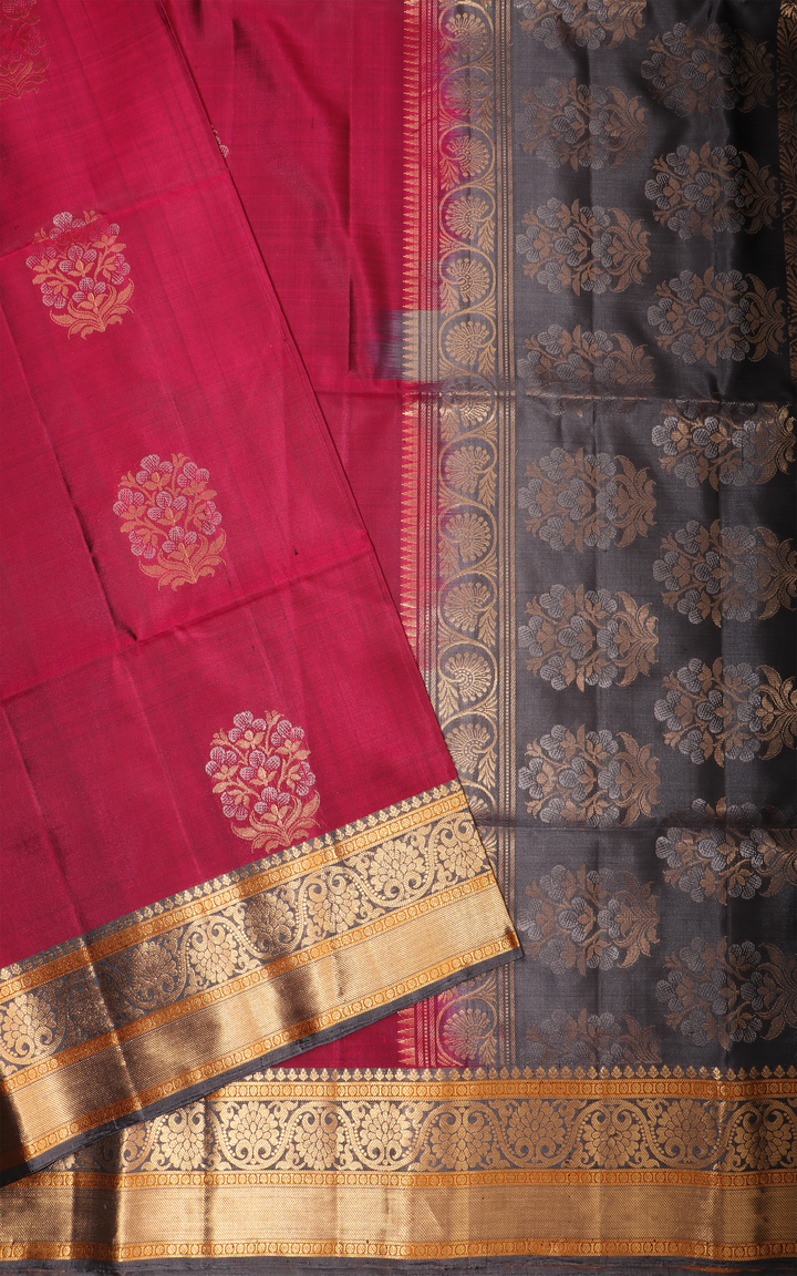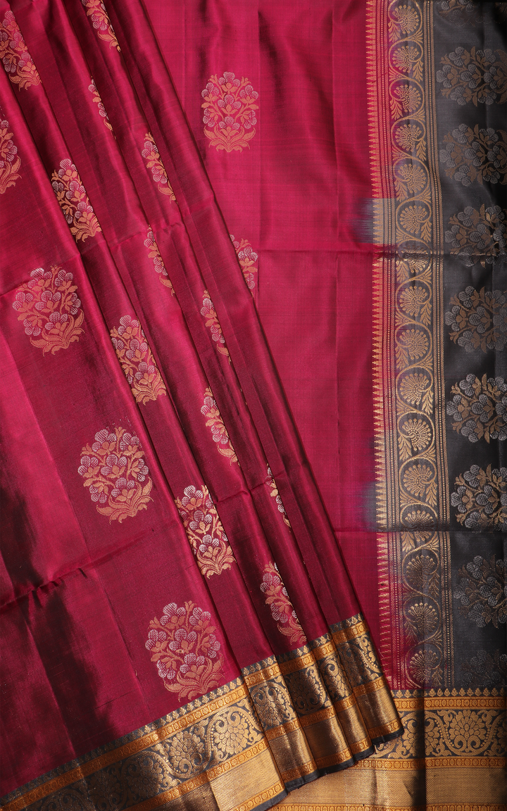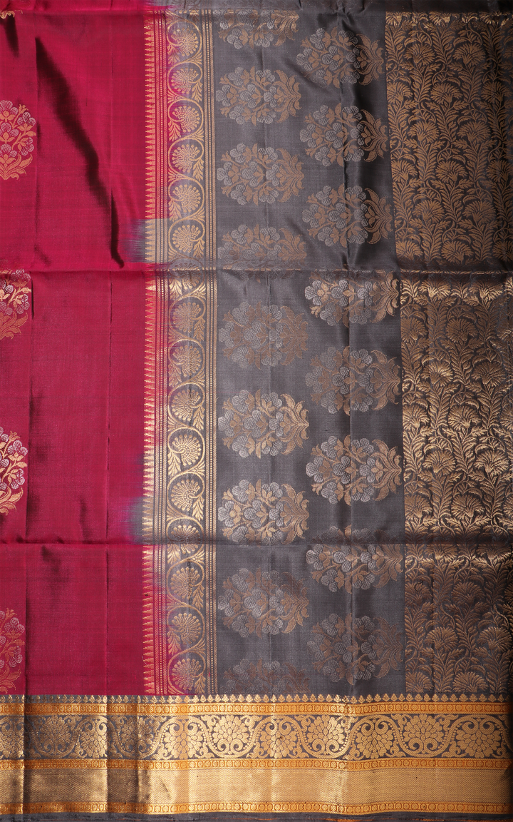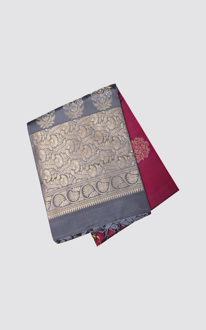 Maroon and Grey Pure Soft Silk Saree