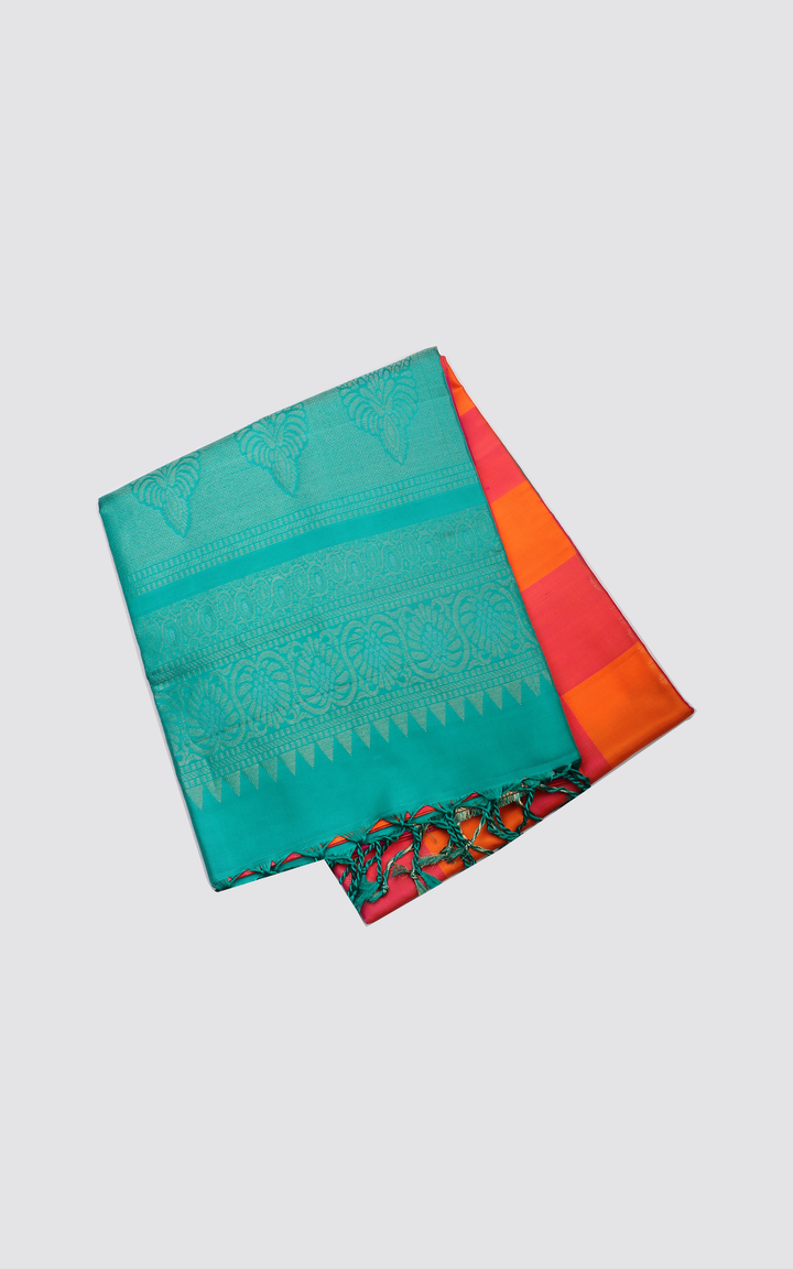 All our sarees are crafted using premium-quality silks, including Kanjivaram, soft silk, and pure zari varieties, handwoven by skilled artisans.