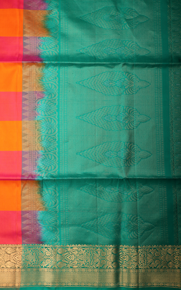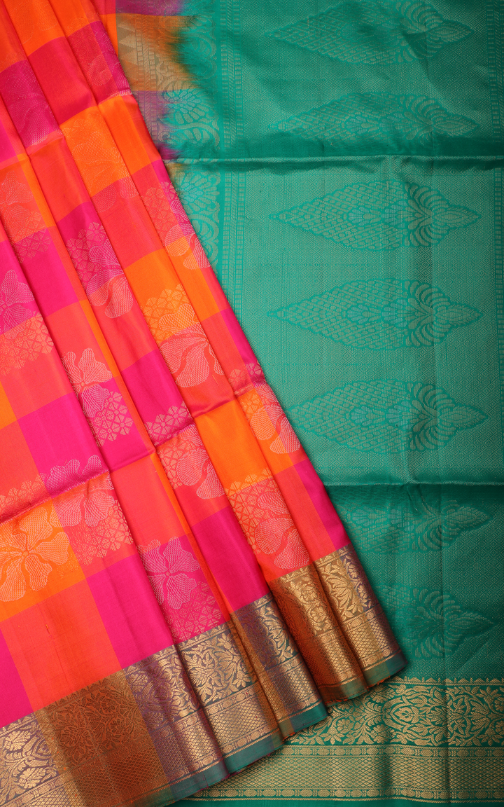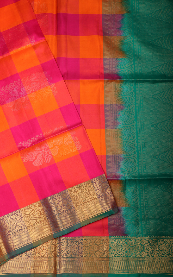 Multi Color Checks Pure Soft Silk Saree with Zari Woven Contrast Border