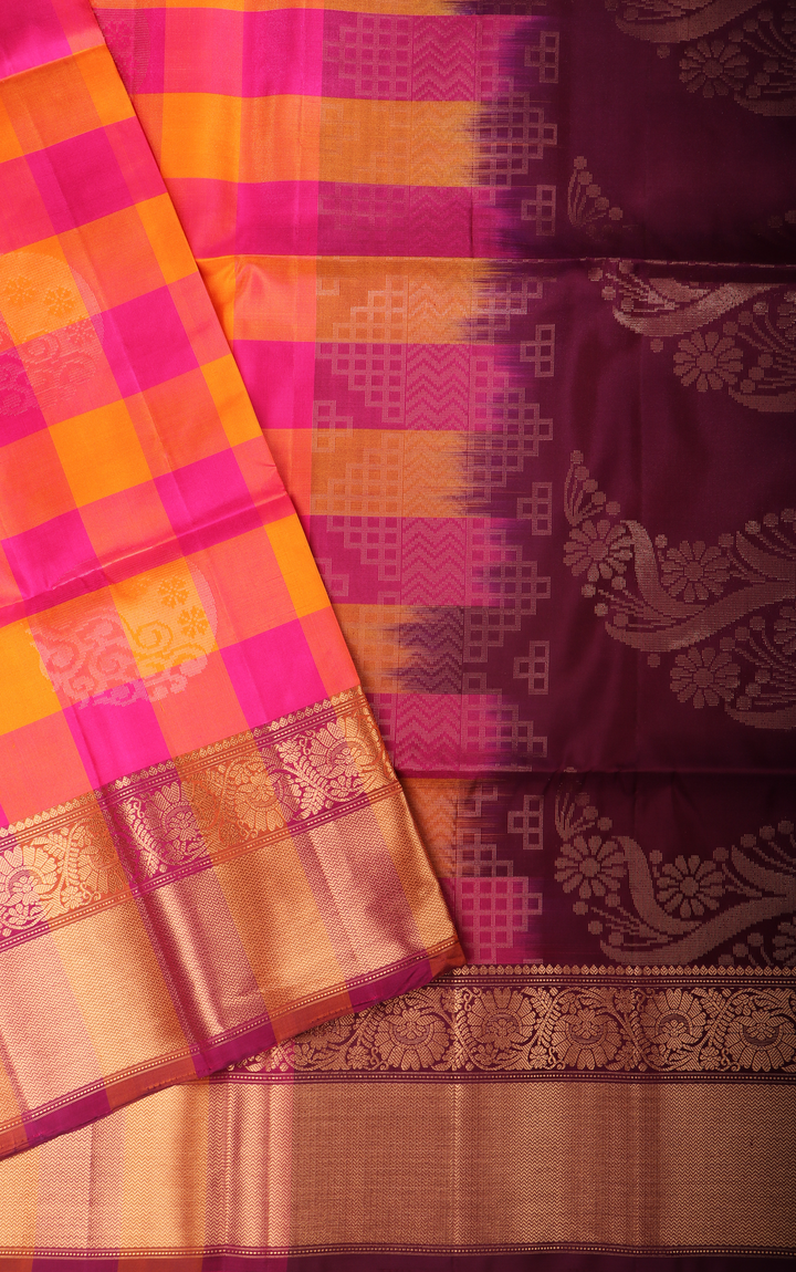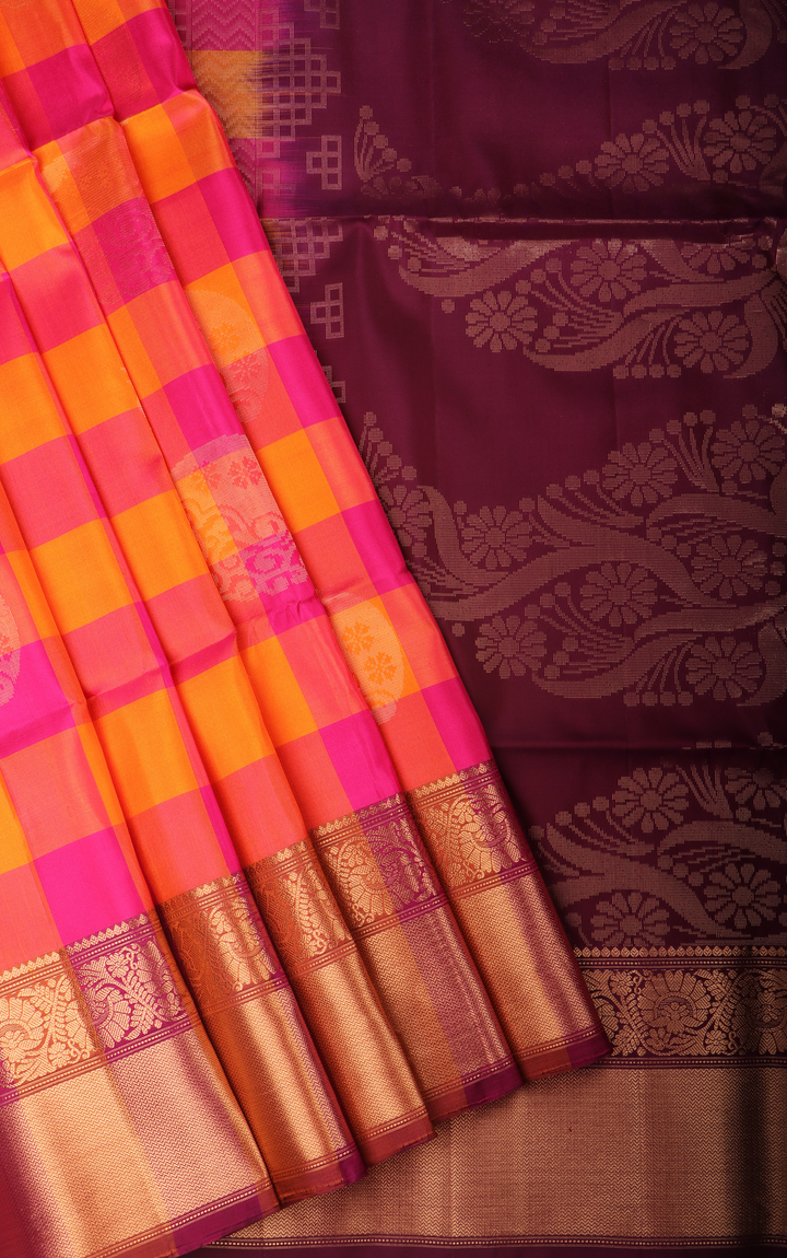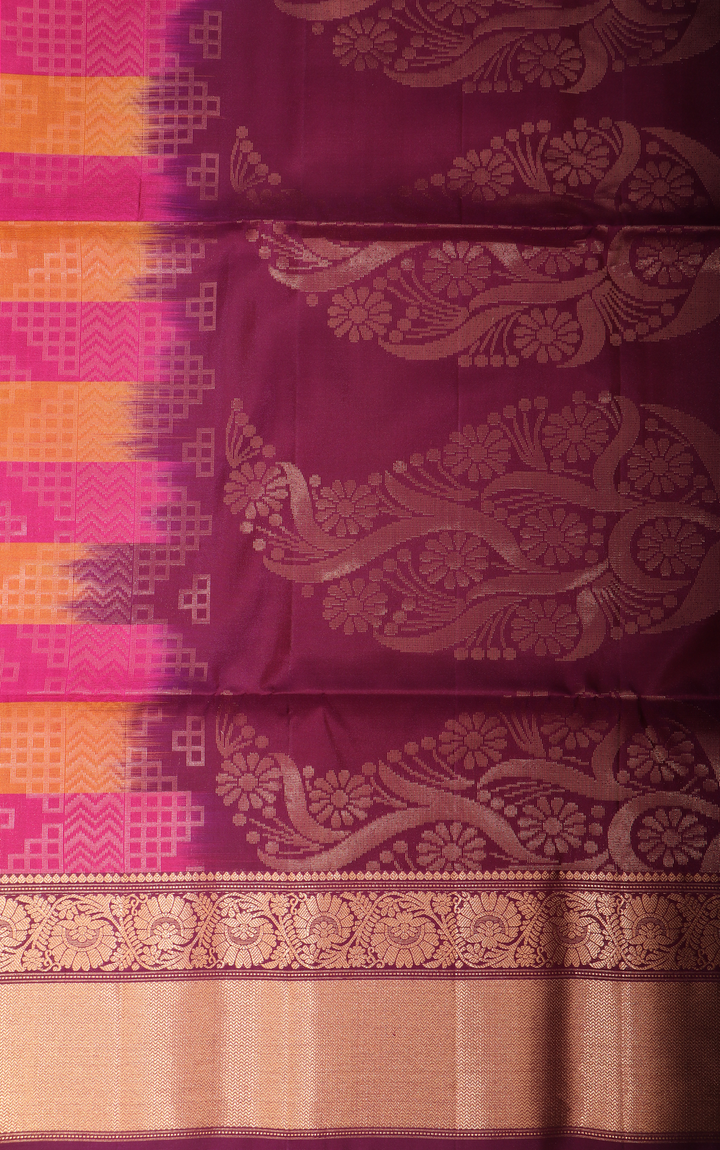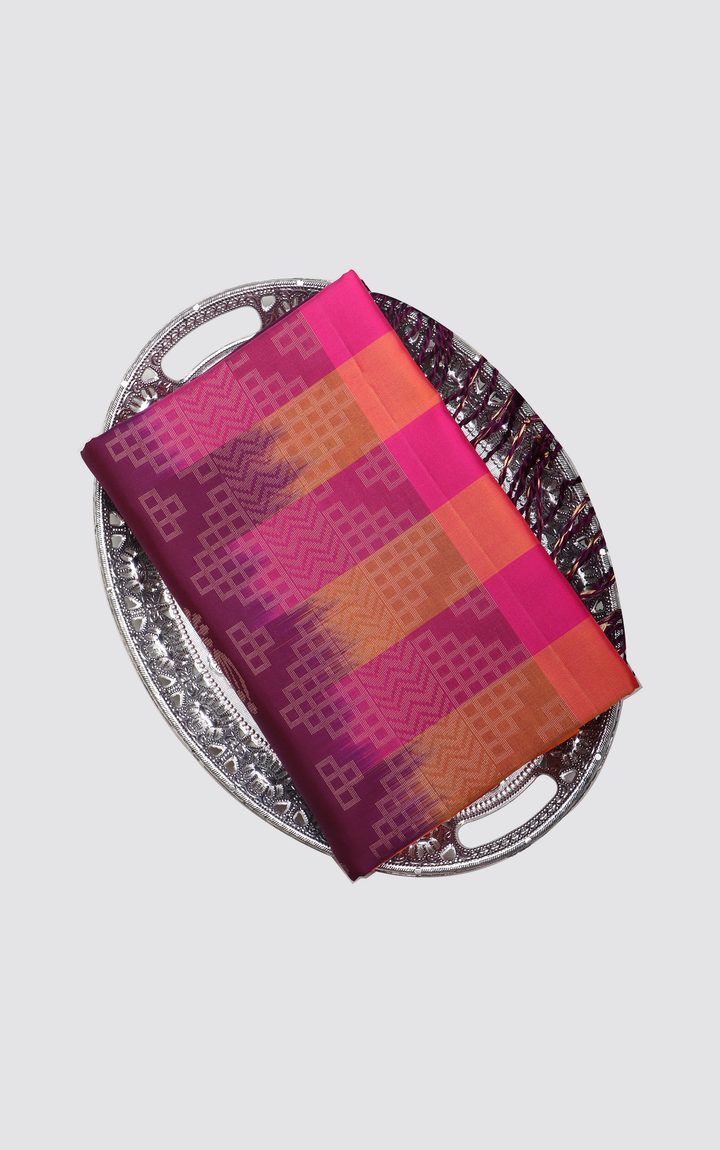 All our sarees are crafted using premium-quality silks, including Kanjivaram, soft silk, and pure zari varieties, handwoven by skilled artisans.