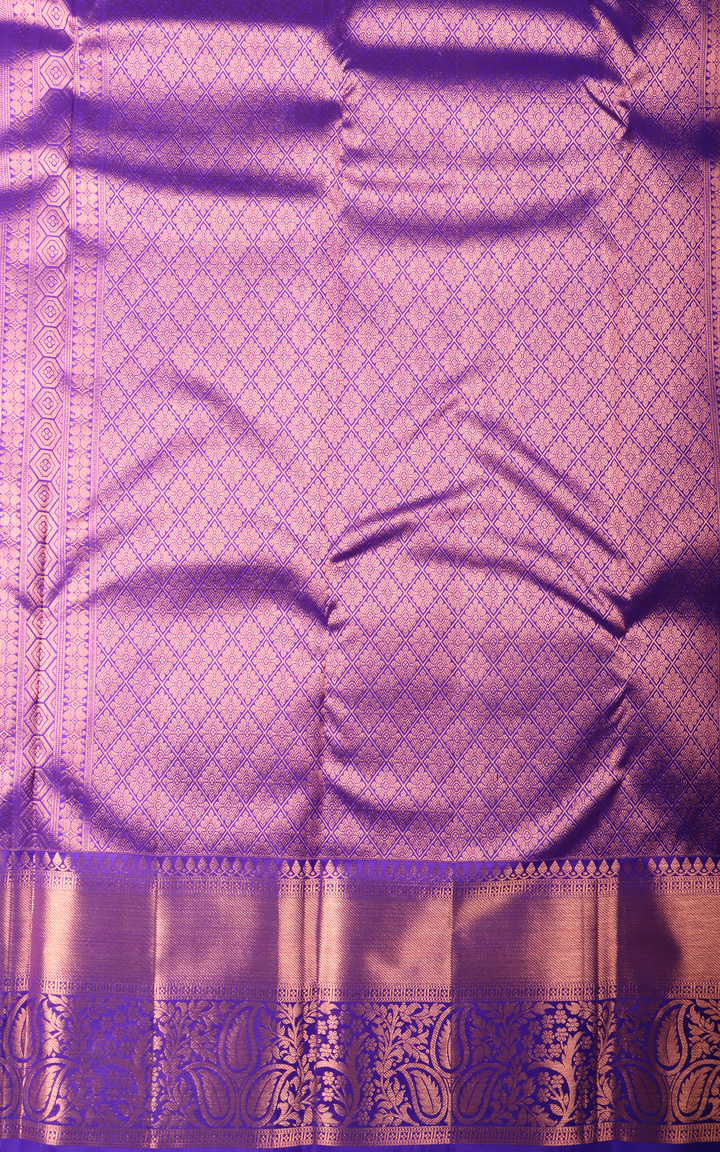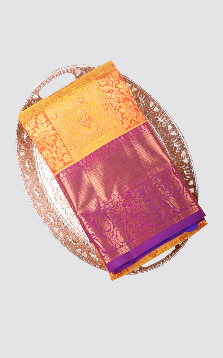 Mustard Yellow and Violet Pure Kanjivaram Silk Saree