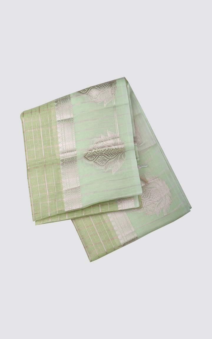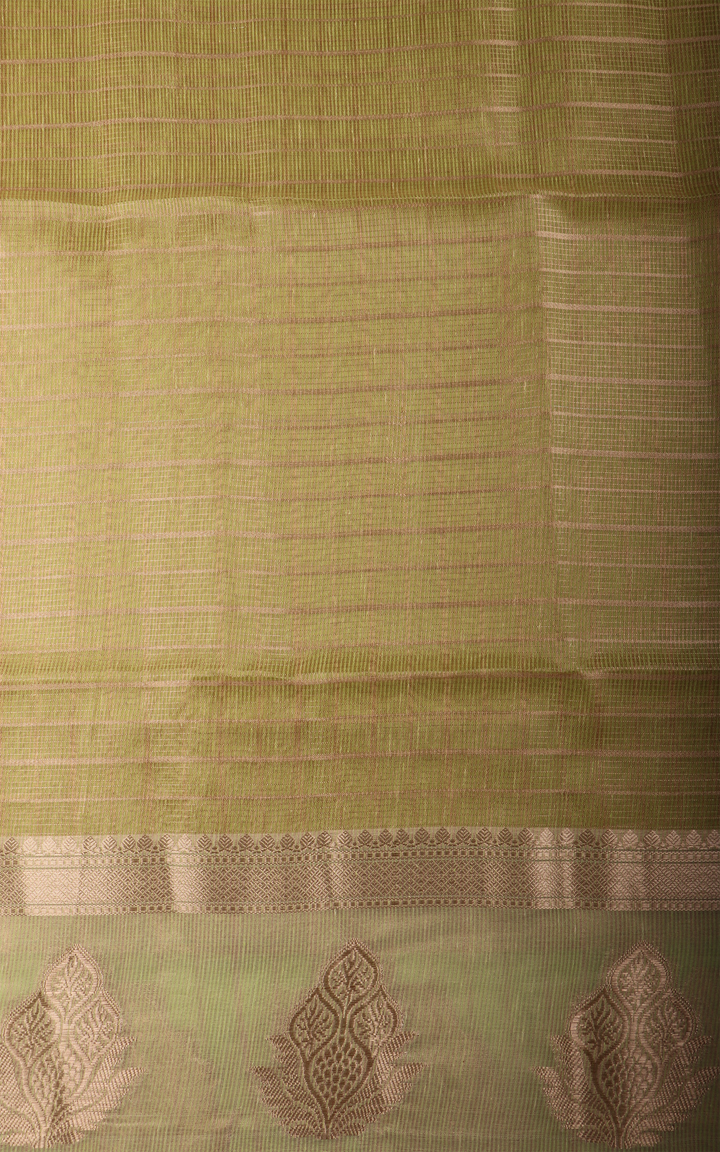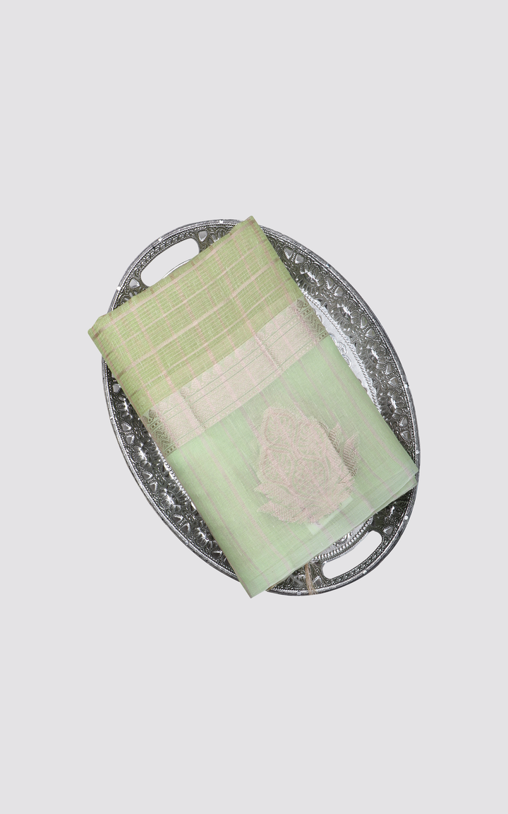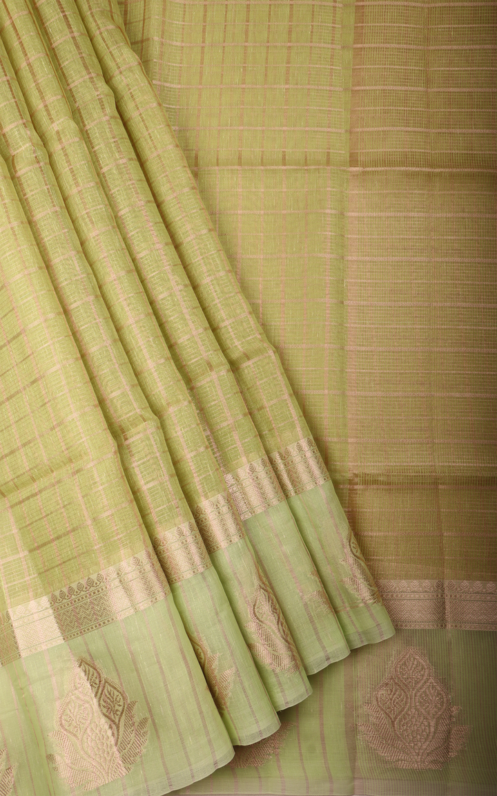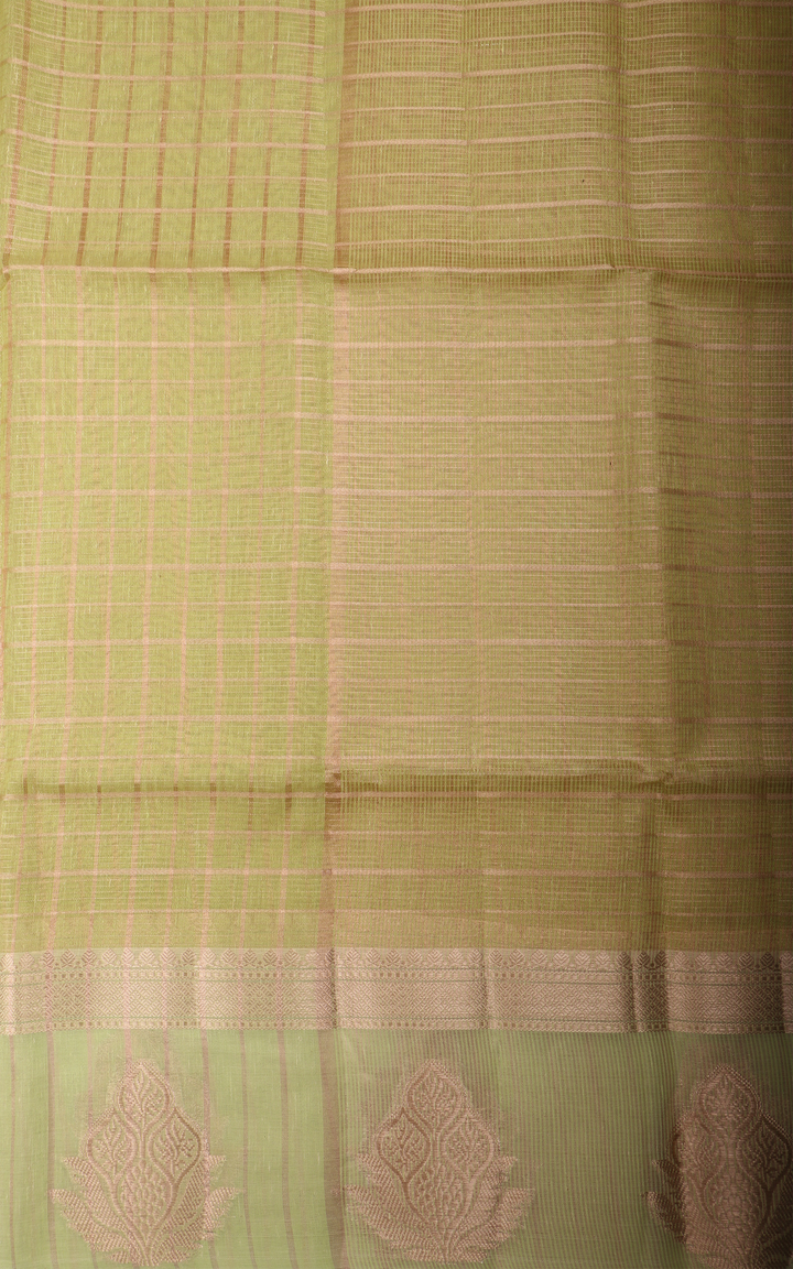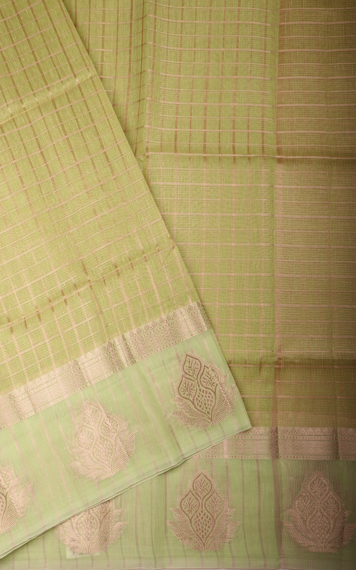Parrot Green Fancy Cotton Saree with Zari Checks and Butta Border
