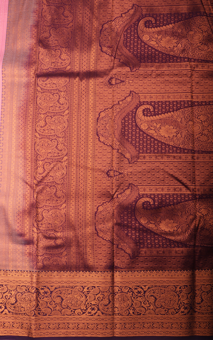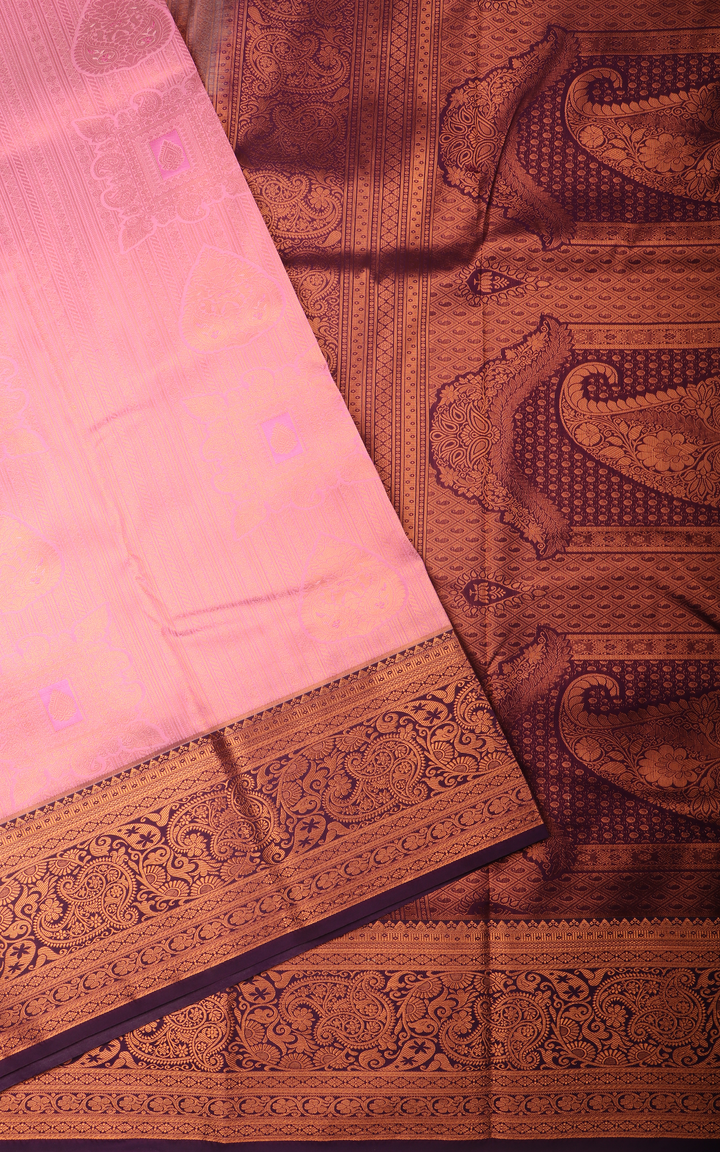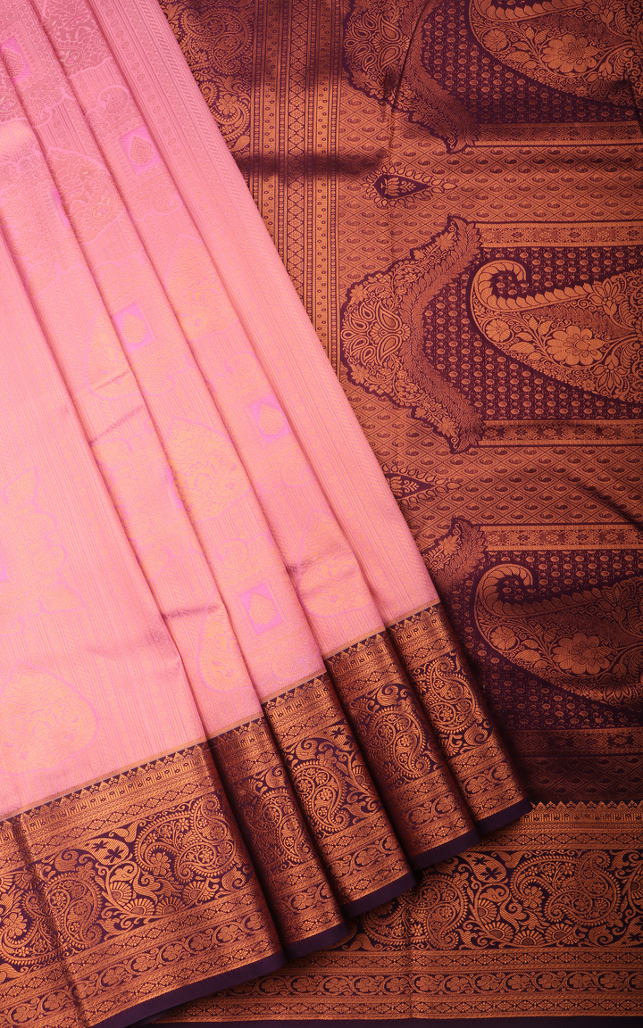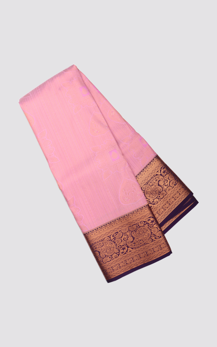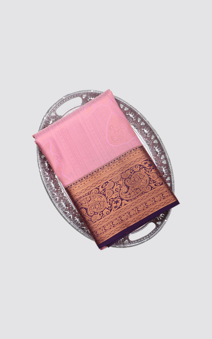 Pink and Purple Tissue Silk Saree with allover Zari Brocade Weaves and Zari Woven Contrast Border