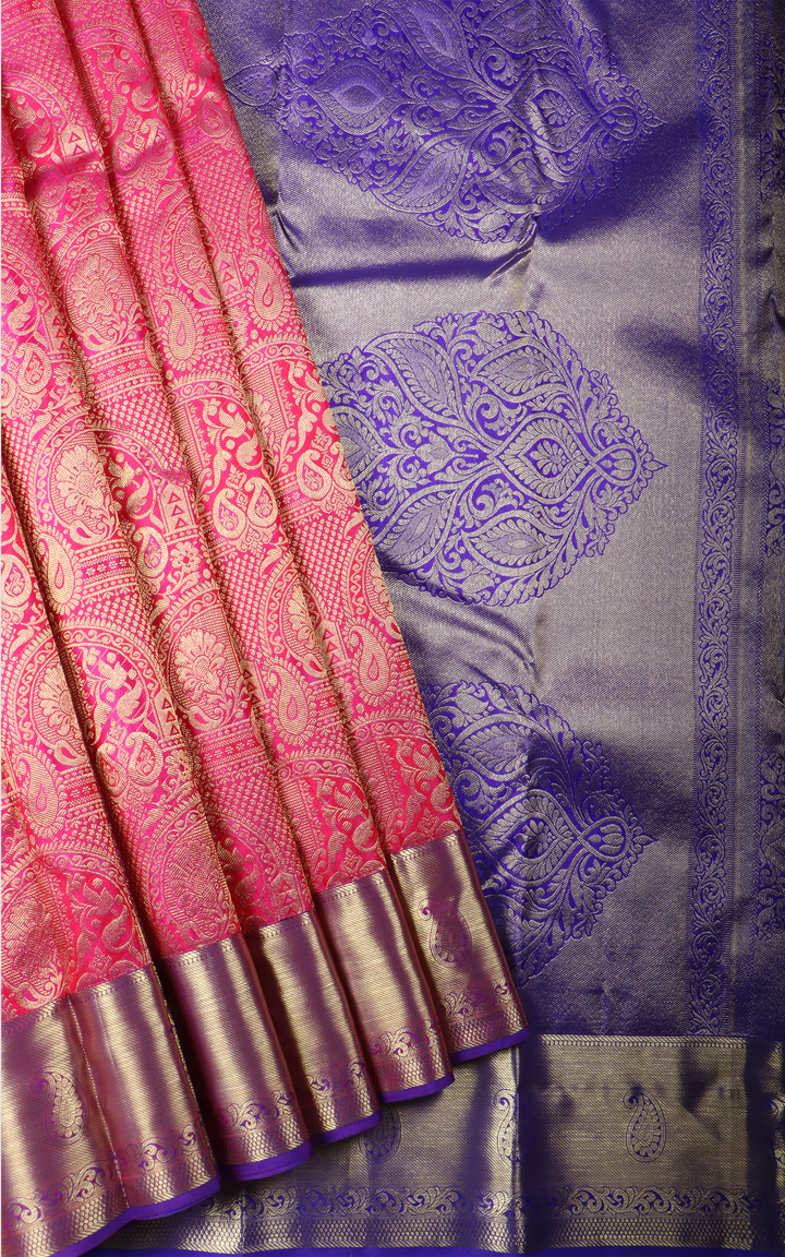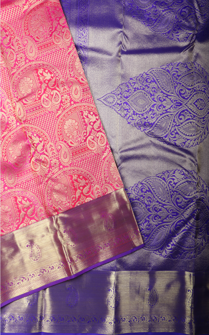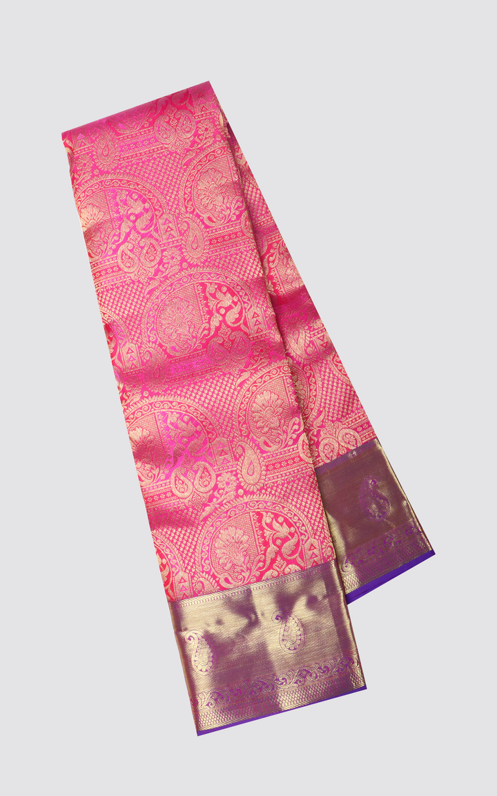 Pink and Violet Pure Kanjivaram Silk Saree