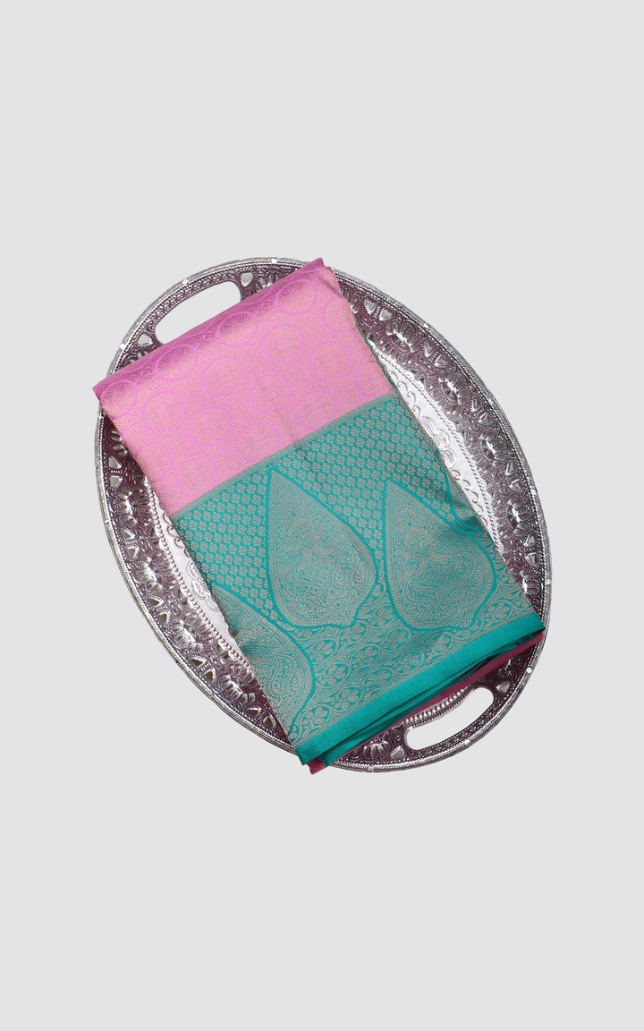 Pure Kanjivaram Silk Saree Pink and Teal Green