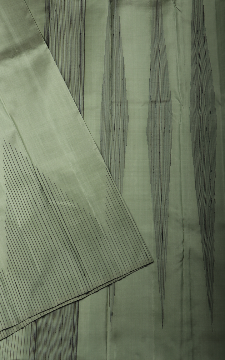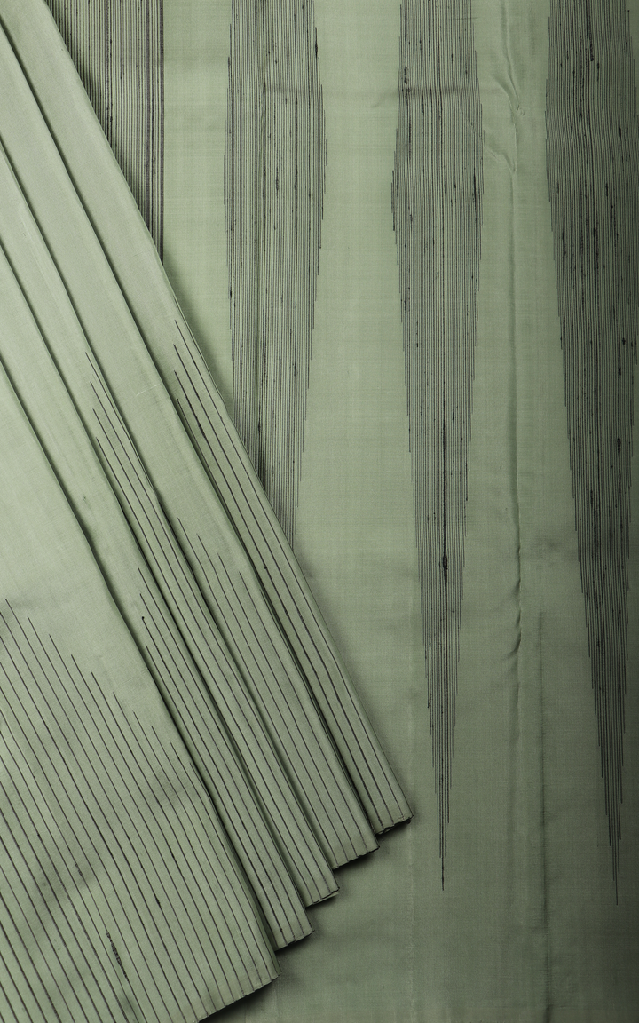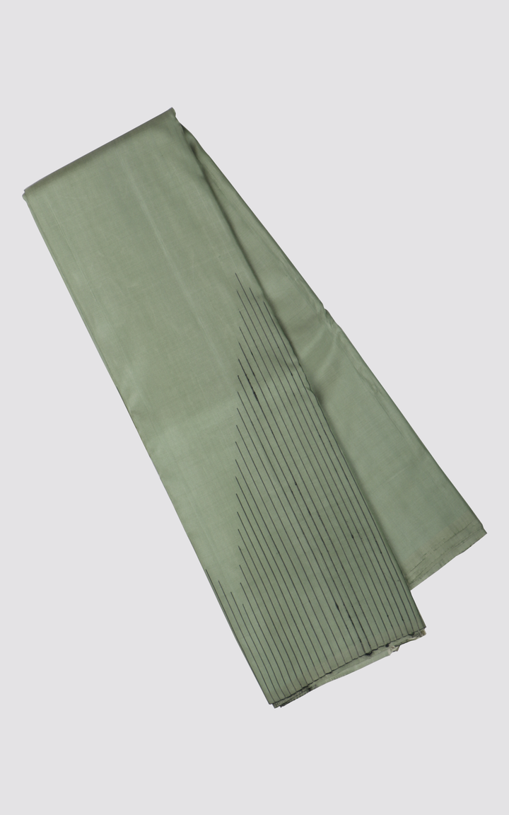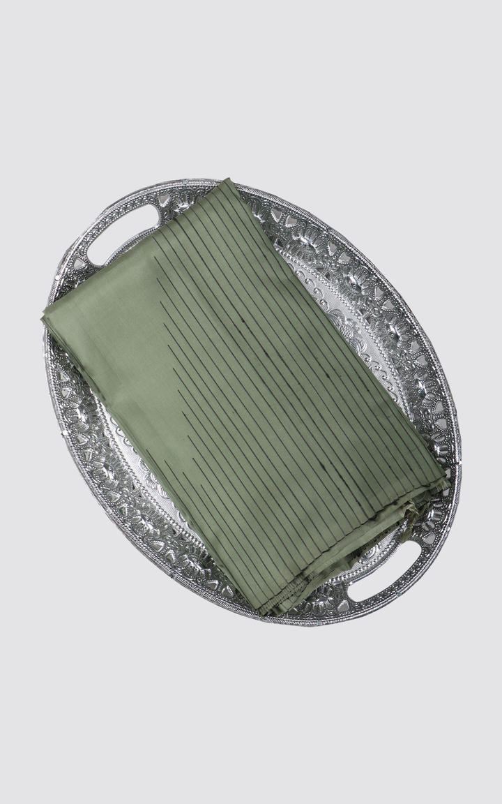 Pure Silk Saree Pista Green with Thread Woven Stripes in Borderless Style