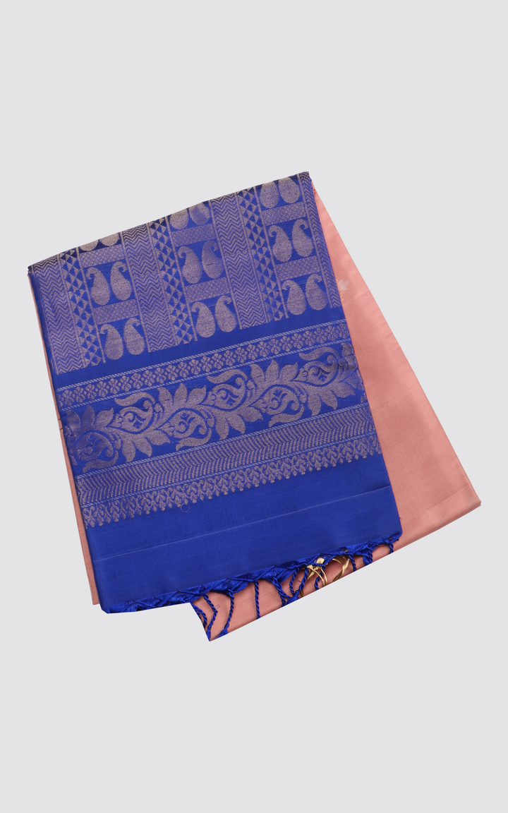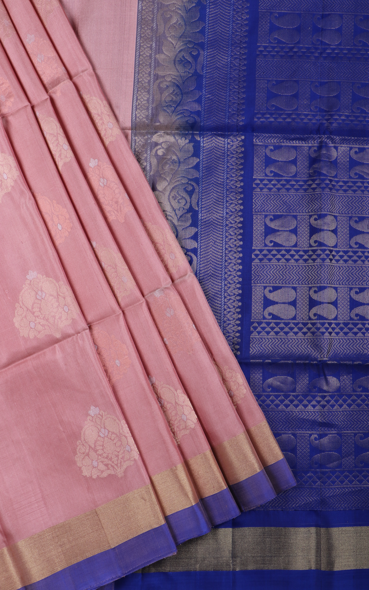 Unveil elegance with our "Pure Soft Silk Saree in Pastel Pink and Blue with Subtle Zari Buttas". Created from premium pure soft silk, this saree embodies timeless grace and sophistication. Ideal for any event, the delicate zari buttas add a hint of traditional allure. Step into refined beauty with pure silk today!