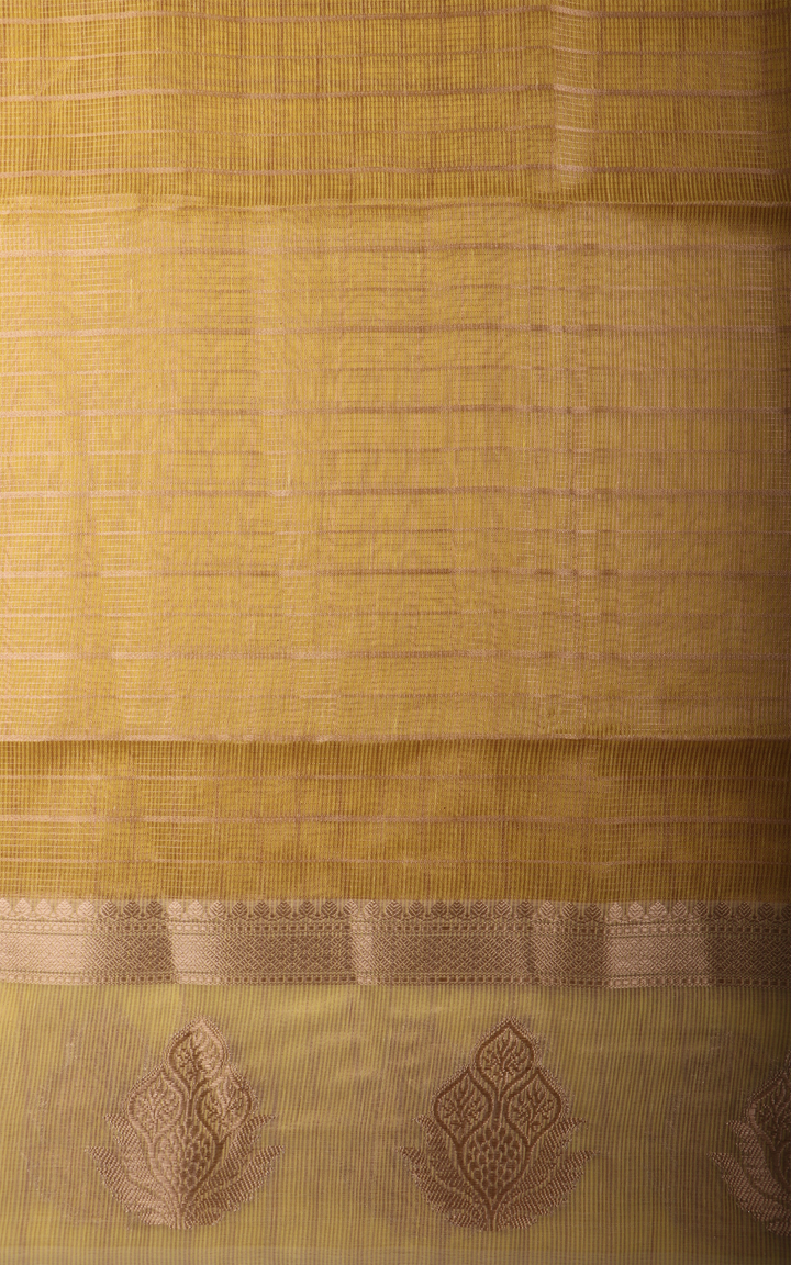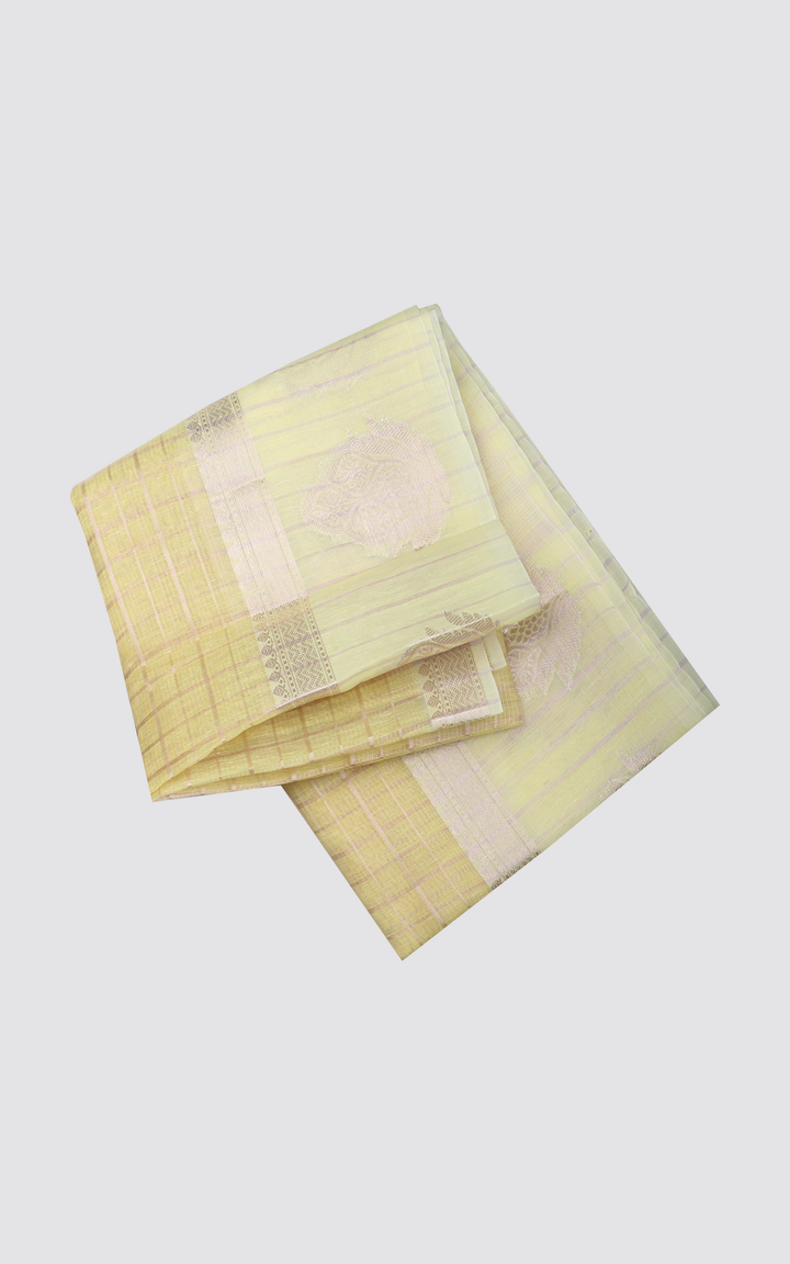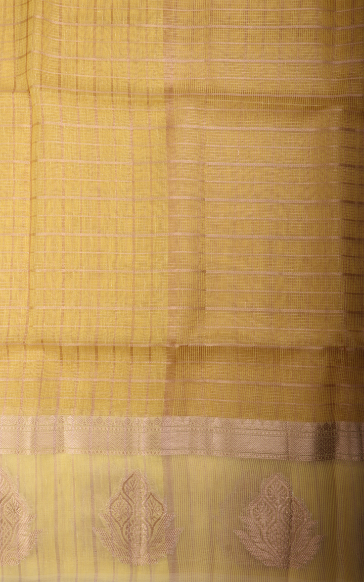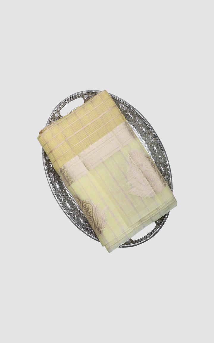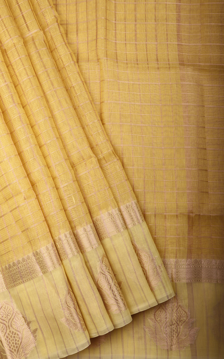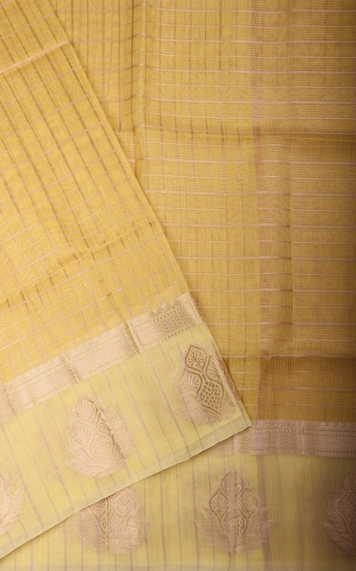 Yellow Fancy Cotton Saree with Zari Checks and Butta Border